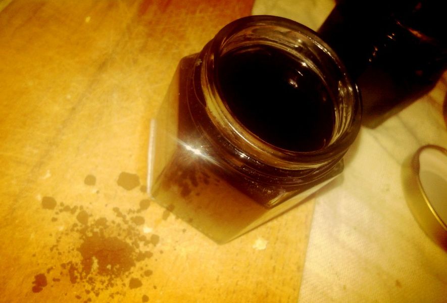 Szóval ebben az üvegben fogod mostantól mindig keverni életed gyümölcsének popsikrémjét. ;) A recept 50ml üvegben készül, ezt nyugodtan szorozhatod ahánnyal jólesik... egyszerűen csak kiméred bele a méhviaszt és a diólevél macerátumot.