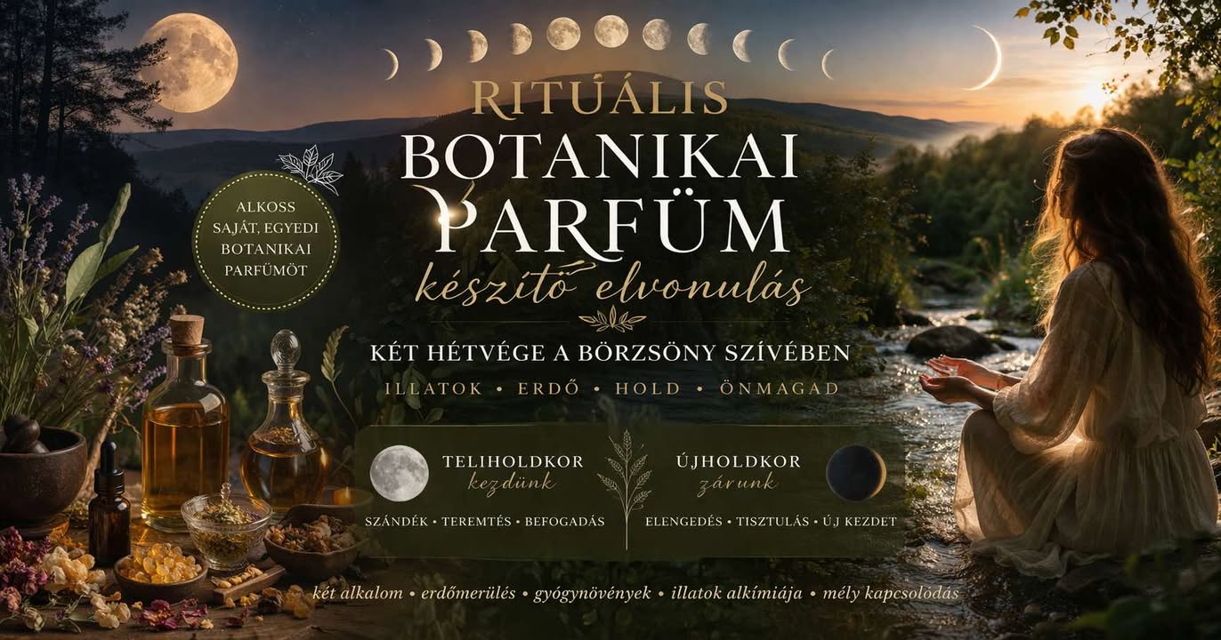 A Börzsönyliget hegytetőjén, mezők, erdők, források és patakok ölelésében egy különleges, két alkalmas rituális élményre hívlak, ahol a természet esszenciáiból megalkotod a saját botanikai parfümödet.
